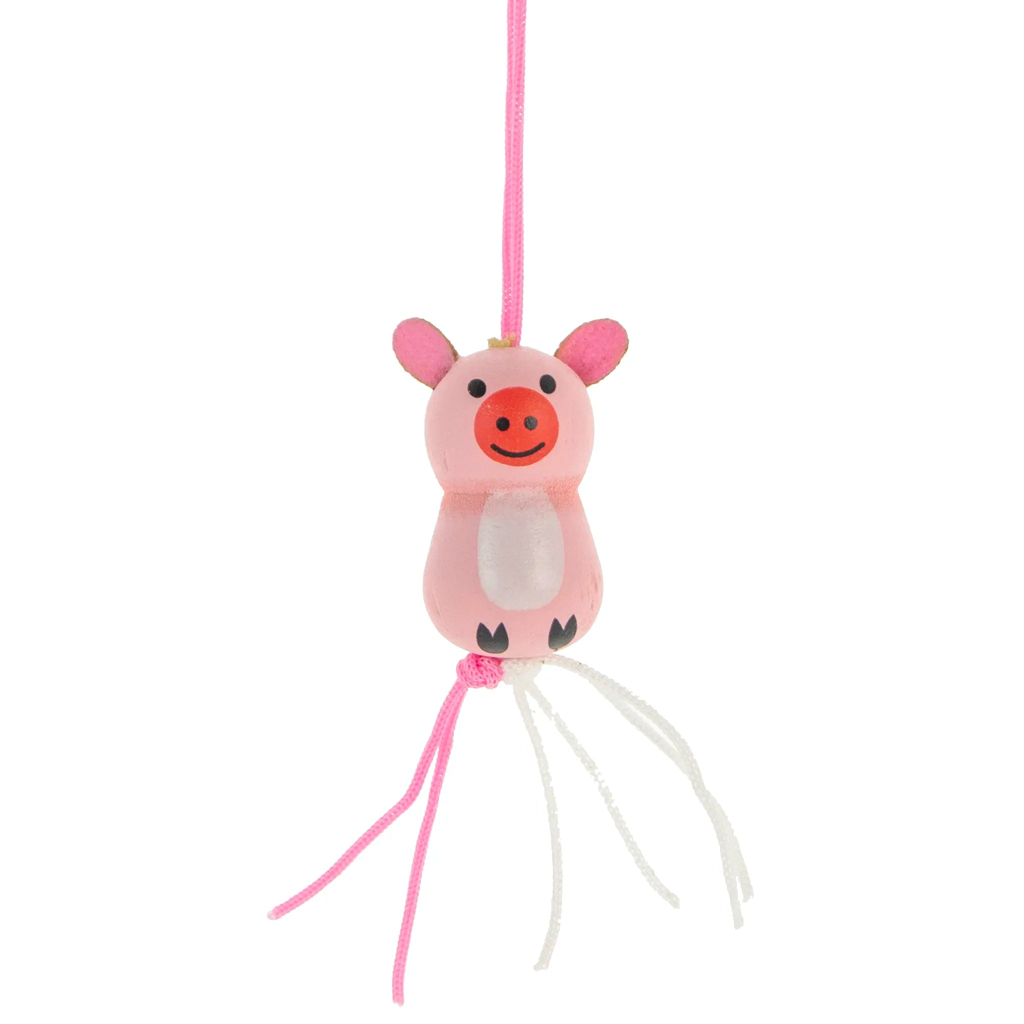 50 pieces of wooden pink pigs on a string. These pendants are 2.5cm. big.