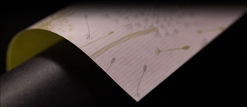 This double-sided wrapping paper from the Varenna collection brings romance and nature to every gift. Pastel pink front with refined dandelion motifs in olive and gray tones, combined with a plain olive green back. Made from Eco Kraft white paper for a luxurious, tactile look – perfect for parties and occasions.